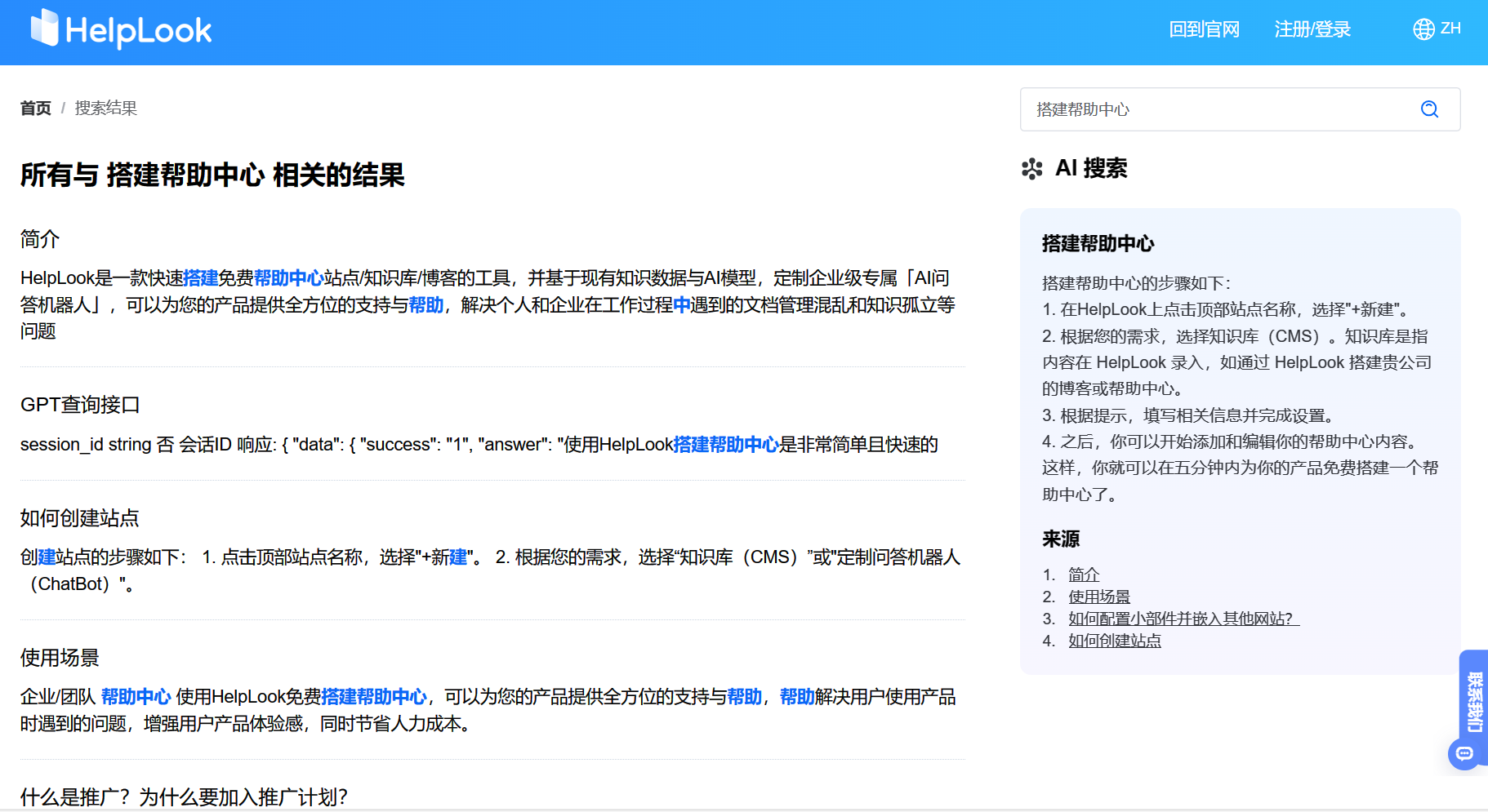 HelpLook中的AI搜索引擎通过减少繁琐的搜索需求,为用户提供了良好的体验。传统的知识管理系统需要用户花费宝贵的时间在大量信息中筛选,HelpLook简化了这一过程。通过HelpLook的AI知识管理解决方案,在同一界面中可以拥有关键词搜索以及AI搜索,一举两得。