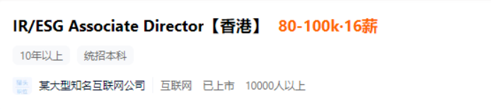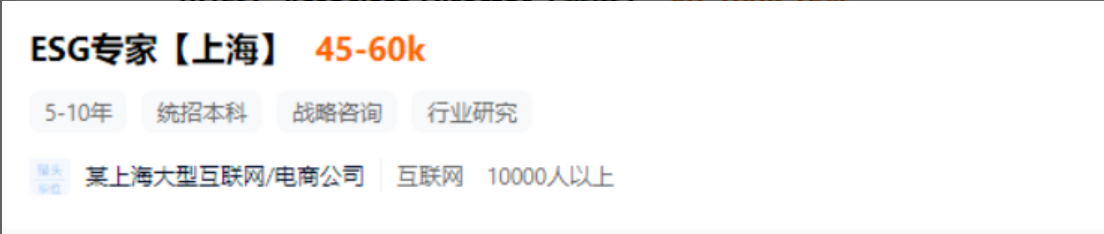 从猎聘招聘网站我们可以看到目前也有很多互联网企业在招聘ESG方面的人才。