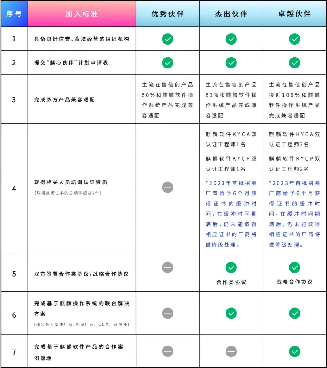 Q1:合作伙伴与麒心伙伴有什么区别?作为麒麟软件的合作伙伴,我们已经习惯了当前的对接方式,如果不加入“麒心伙伴”计划,有什么影响吗?
