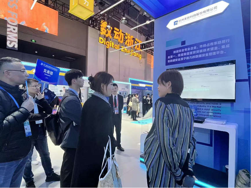 作为浙江省头部企业之一,美创科技受浙江省商务厅邀请在浙江展区作数据安全领域新成果展示。