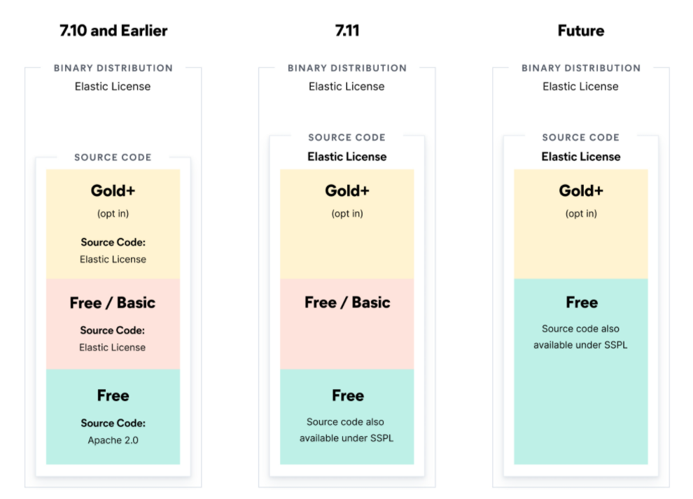 Elastic 修改了 Kibana(配套可视化工具) 和 Elasticsearch 的开源协议( ALv2 -> SSPL & Elastic 双授权),意味着 7.10.2 版本后不再提供开源版本。