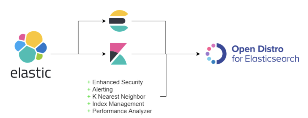 项目早期,Open Distro 的核心仍然是普通的 Elasticsearch。Amazon 对 Open Distro 所做的是为 Elasticsearch 和 Kibana 添加功能。