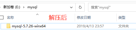 作者将 mysql-5.7.26-winx64.zip 解压到 E:\mysql 下,再说一遍,这个目录完全是自己选择的。
