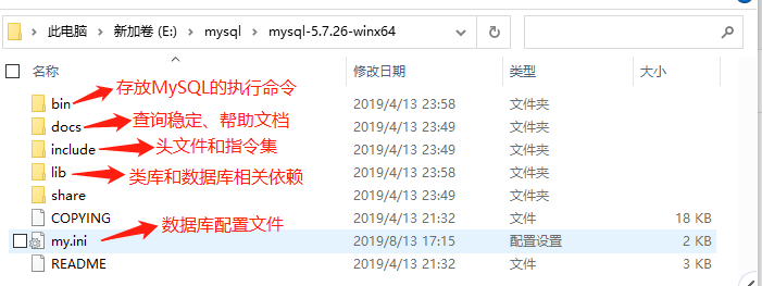 mysql-5.7.26-winx64 文件的目录结构说明如下: