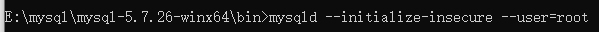 2、mysqld --initialize-insecure --user=root 初始化 MySQL 数据目录,此时会在 mysql-5.7.26-winx64 下生成 data 文件夹