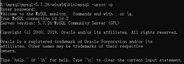 使用管理员权限打开DOS,进入到 mysql-5.7.26-winx64 的 bin 目录下。