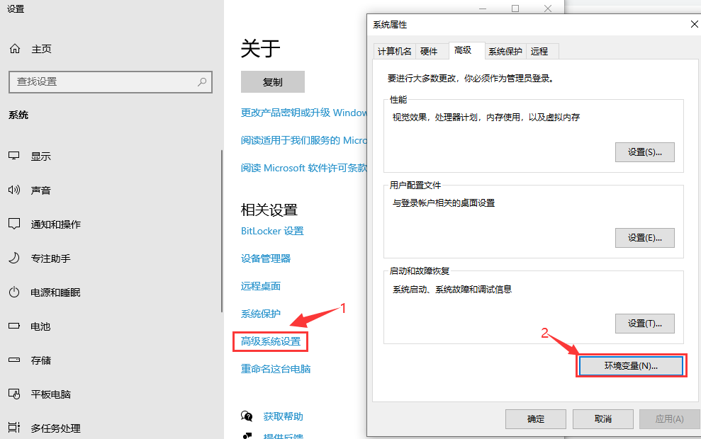1、此电脑 --》属性 --》高级系统设置 --》环境变量