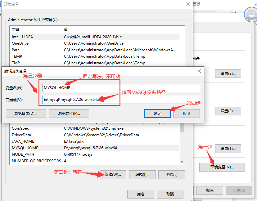 将上图红框中的路径改成 mysql-5.7.26-winx64 存放的地址。比如作者放在 E:\mysql ,配置完成后如下图所示: