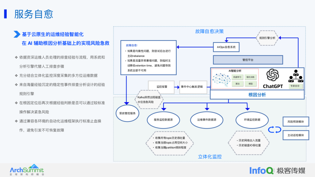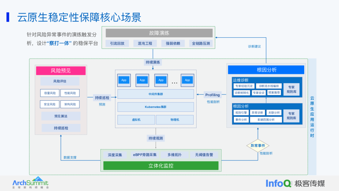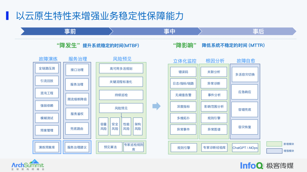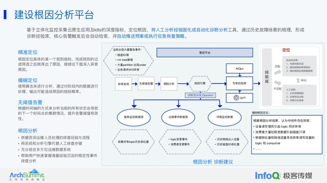基于云原生架构的特性设计了一些新的模块,以满足应对事前降发生的风险预测能力、应对事故发生后的降影响的根因分析故障诊断能力,就成为了我们落地的目标。