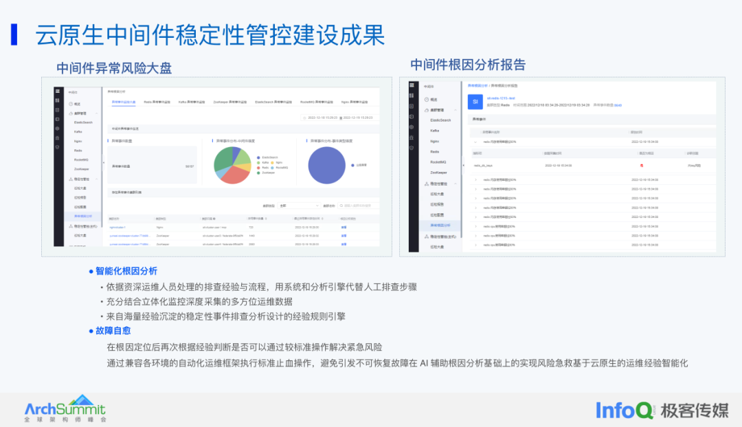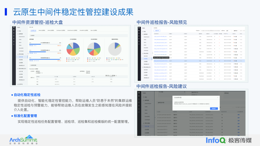 对于稳定性平台在云原生环境中的应用场景,除了无状态的微服务,我们也在较为复杂的中间件类型应用进行了验证,因为Redis、Kakfa、Elasticsearch等有状态的中间件集群的异常往往是影响SLA的源头。