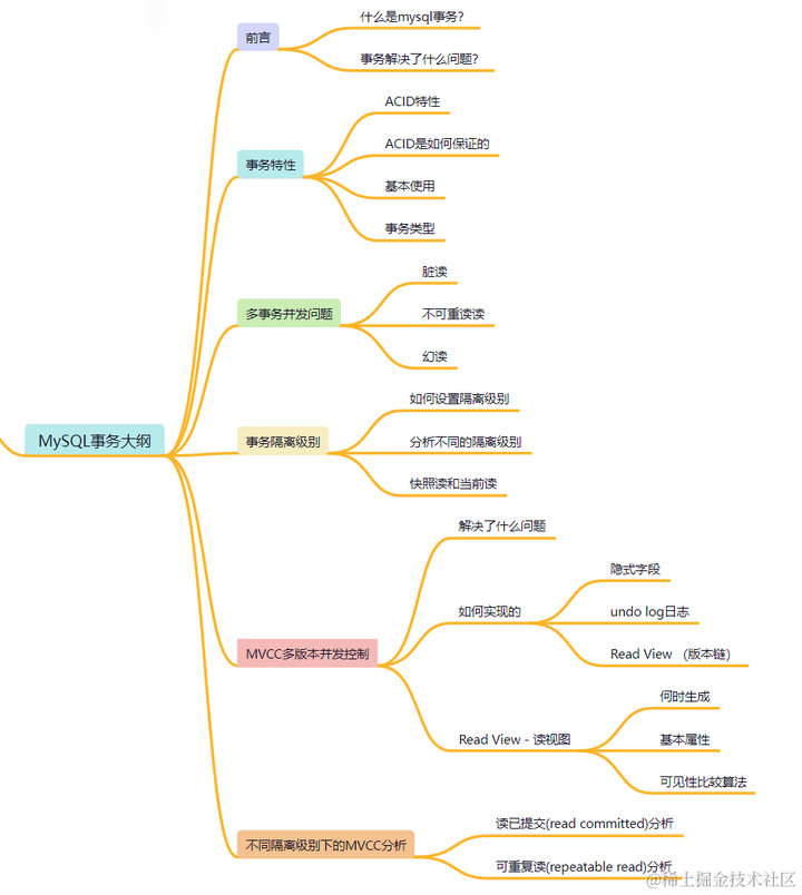 阅读之前,提前了解下全文大纲,对阅读内容有个先前了解,这样对事务这块了解程度不同的朋友就可以选择不同的章节去读了。