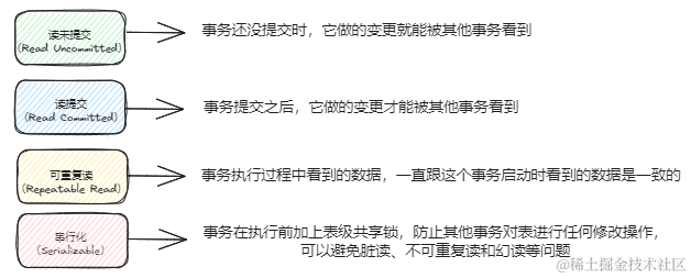 大家弄懂了几个的区别吗?如果不太清楚的,可以结合事务隔离级别的案例流程来了解