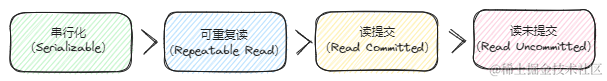 隔离水平高低排序如下,但是隔离级别越高,性能效率就越低