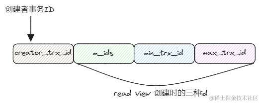 creator_trx_id ,创建这个Read View 的事务ID,即创建者的事务ID,而不是记录中的trx_id哦!