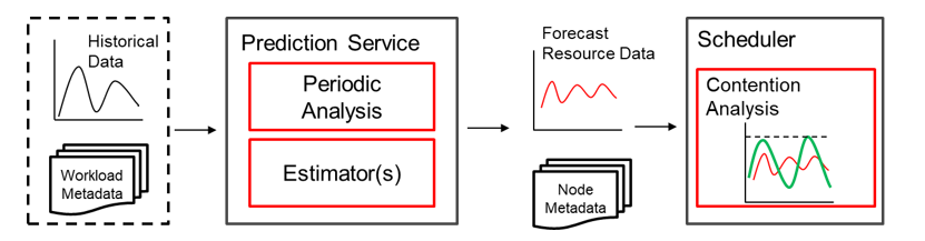整个算法分为预测和调度两个部分,其中预测主要基于每种负载的历史数据,统计其时序变化情况,以供调度器使用;调度则基于上述信息,结合新任务的特征情况,给出合理的调度决策。