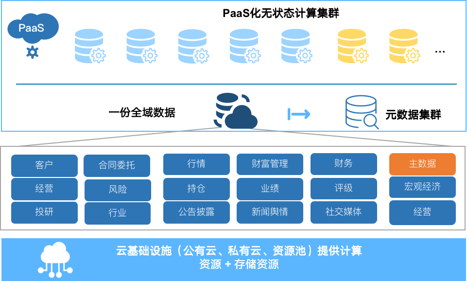 以某国有大型银行为例,使用HashData云原生数据平台整合了所有分析平台,将全域数据按照主题域进行划分,实现了数据集中管控,数据架构融合统一。由于数据平台统一,可以在全行内使用统一的数据模型最佳实践,避免不同技术栈产生的模型差异,减少了次生数据质量问题和元数据操作,大幅降低了数据管理成本。