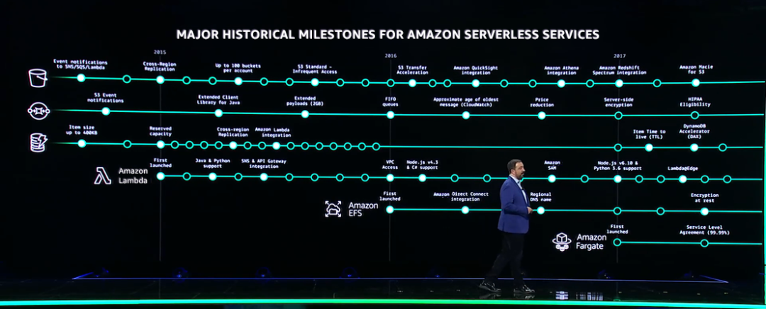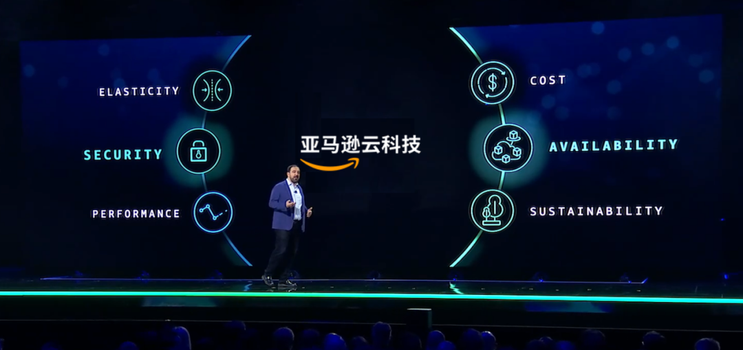 Peter 同时介绍了亚马逊云科技在其所有产品中广泛使用的六个重要的云计算服务属性:安全性、可用性 、可扩展性、性能效率、成本效率和可持续性。Peter 解释称,Serverless 通过这些设计理念,在亚马逊云科技庞大的基础设施之上运行,并在大量客户中共享计算资源。