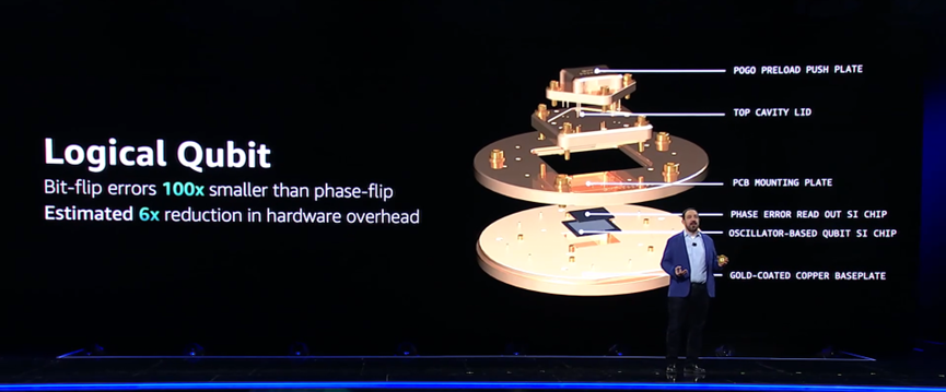 在前沿技术领域,Peter 带着观众在亚马逊云科技量子计算方面的努力进行了精彩的探索,包括亚马逊云科技为实现量子计算所做的工作。现阶段在量子计算领域常见的挑战是量子比特噪音过大,无法满足高要求的计算需求。