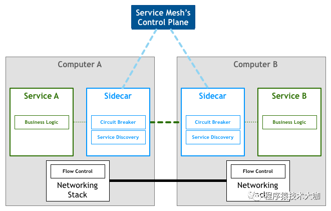 服务网格的核心是数据平面(Sidecar)与控制平面(Control Plane),如下图: