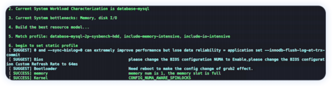 (2)根据应用场景识别的结果,向用户推荐需要调优的内核态参数