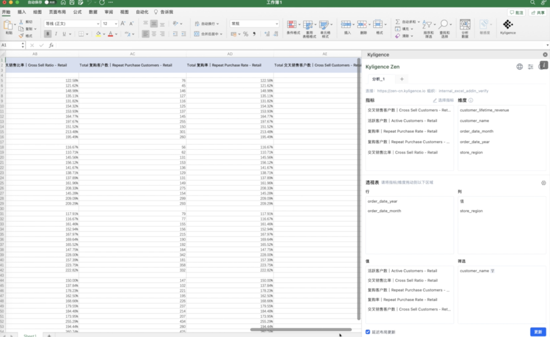 在统一指标平台的加持下,用户将告别各类复杂操作,只需在 Excel 中进行拖拉拽,就能真正实现自助分析。即使面对复杂的业务场景和日益增长的海量数据,业务人员也可根据需求灵活调整、分分钟自助搞定,极大地提高了分析的灵活性和效率。