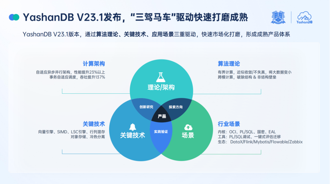 “基础软件产业的发展,始终遵循这样的一条路径——从基础研究到技术领先再到产业强大。”YashanDB 产品总监王南在发布会上表示,YashanDB 在五年时间里通过算法理论、关键技术、应用场景三驾马车驱动产品快速成熟。