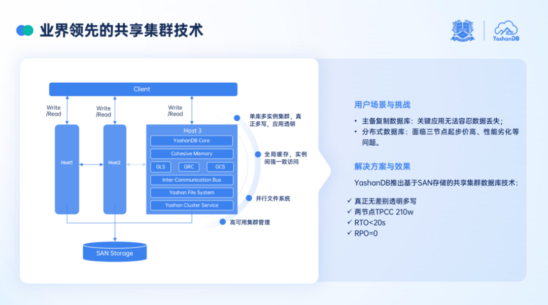 当然,除了全方位的能力迭代之外,本次发布会最受期待的便是向金融核心场景的 YashanDB 共享集群。
