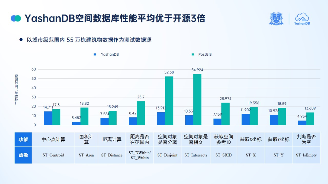 不难看出,YashanDB 空间数据库在确保性能的同时,也在积极拓展更多有业务需求、有场景价值的能力,而这些能力在开源的 PostGIS 中是不可见的。