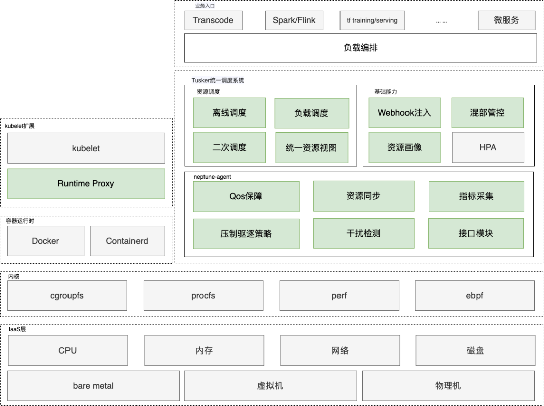 更高服务质量保障能力:在更为激进的 CPU 利用率目标背景下,通过建设 QoS 感知调度能力,干扰检测能力,依托安全容器等技术手段,解决深水区混部中可能遇到的各类混部干扰问题。