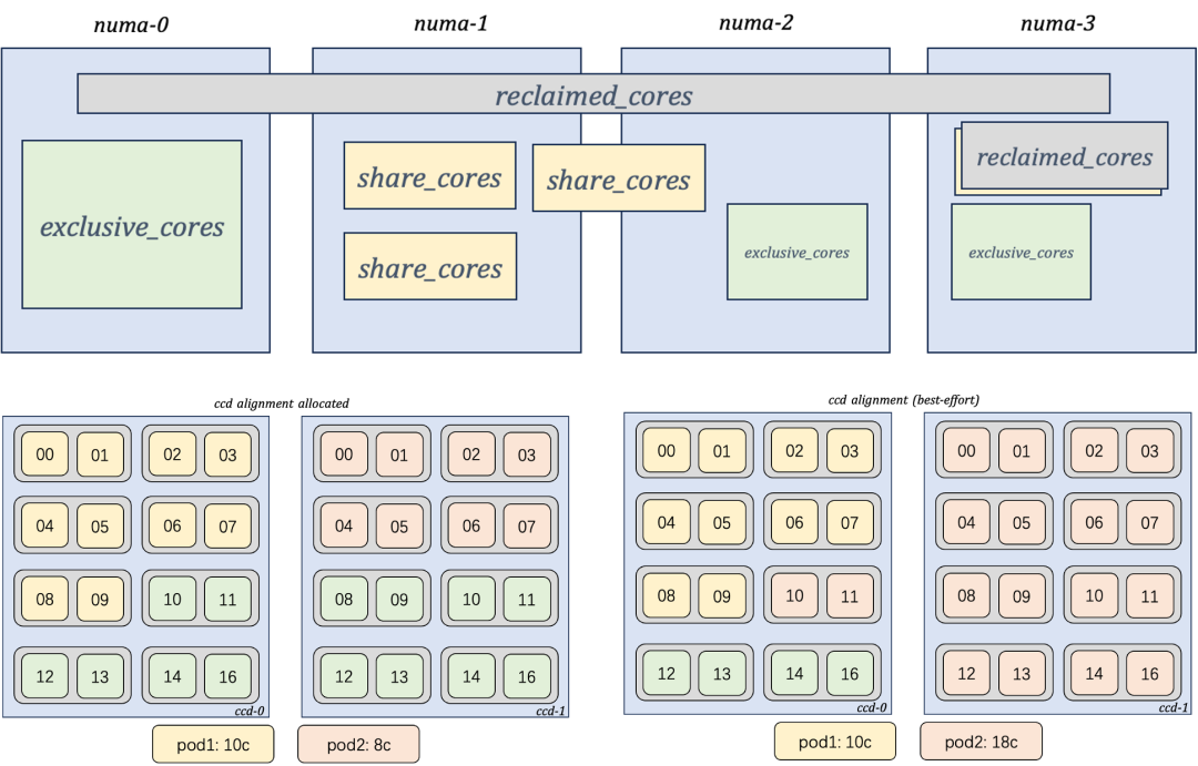 特点:绑定 cpuset 调度域,CCD 感知,numa(可选)绑定,share/exlusive 排他,可与 none 类型业务共享