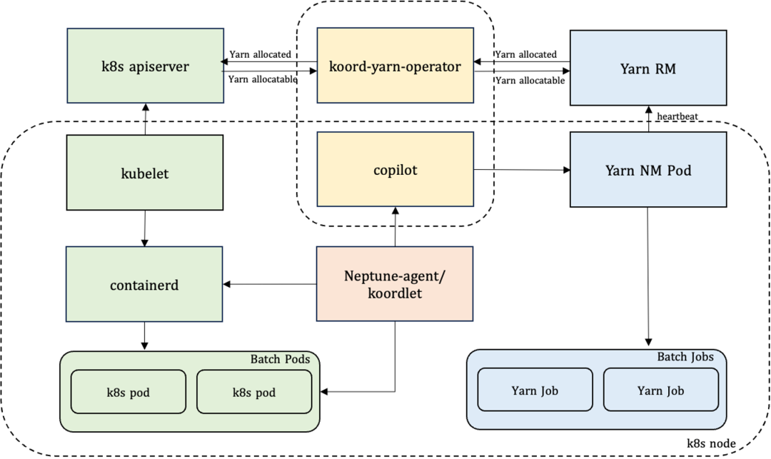 koord-yarn-operator :支持 K8s 与 yarn 调度器资源视图双向同步;