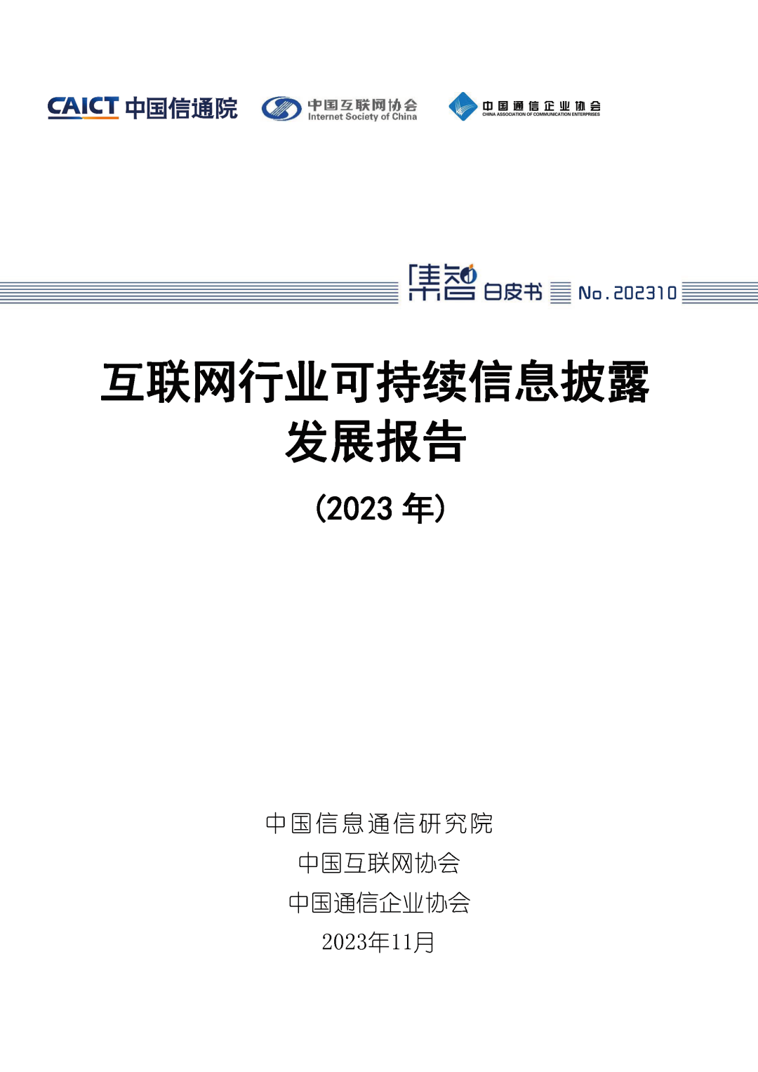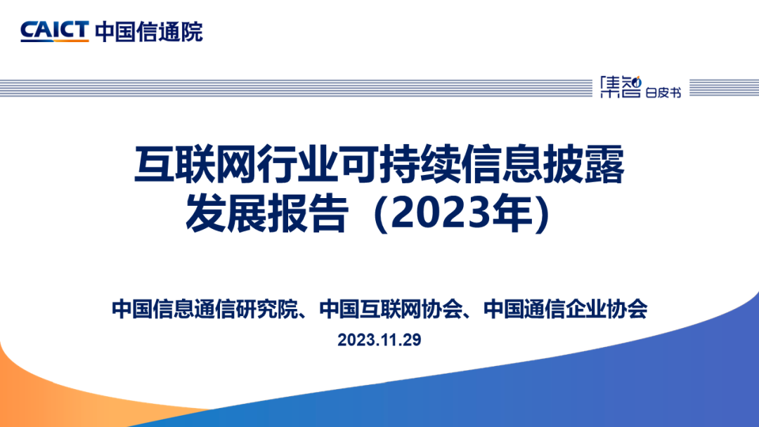 2023年11月29日,中国信息通信研究院(简称“中国信通院”)在“2023(第十届)中国互联网社会责任论坛”联合发布了《互联网行业可持续信息披露发展报告(2023年)》,中国信通院党委副书记王晓丽对报告进行了深度解读。