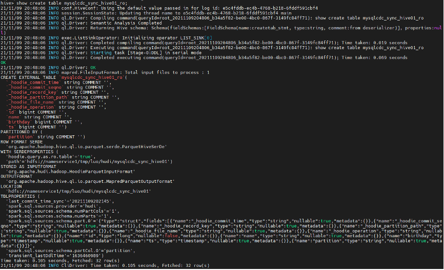 hudi->connect --path hdfs://nameservice1/tmp/luo/hudi/mysqlcdc_sync_hive01