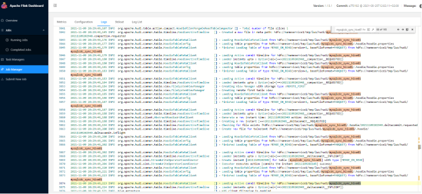Flink jobmanager log sync hive过程详细日志