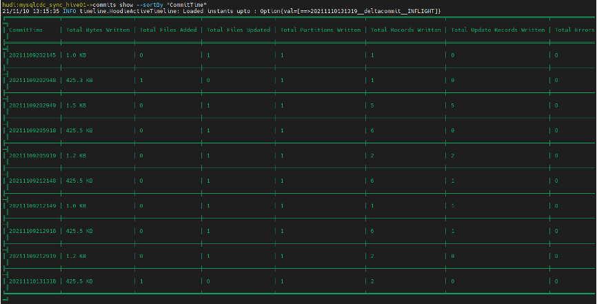 hudi:mysqlcdc_sync_hive01->commits show --sortBy "CommitTime"