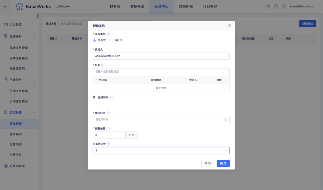 2.批量操作支持按基线进行任务的筛选