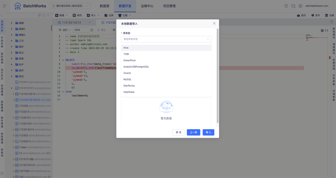 • 支持数据源本地数据导入