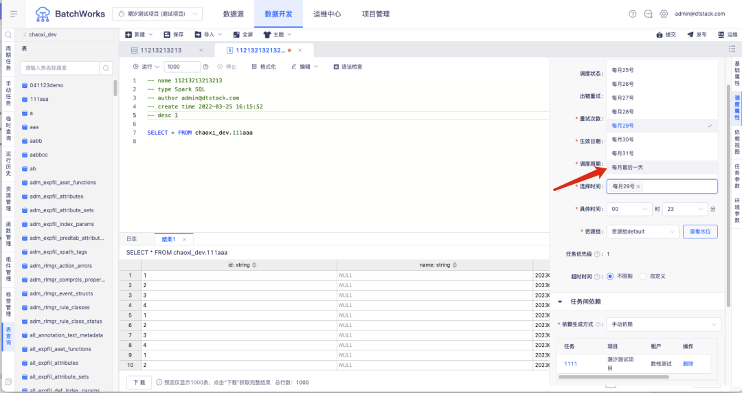 9.调度周期为月时,支持选择最后一天