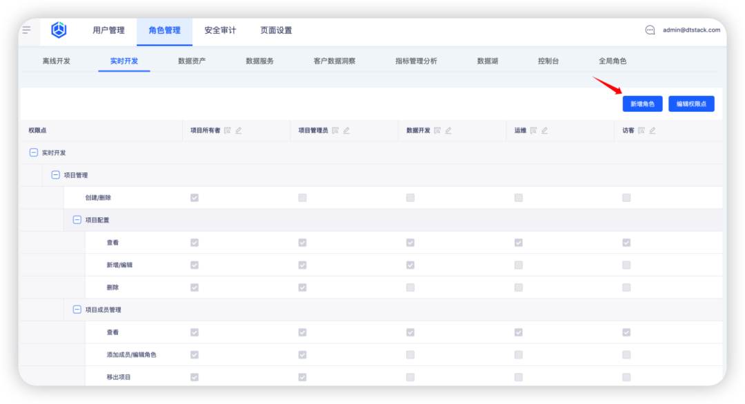 新增功能说明:支持在「角色管理」中新增自定义角色并编辑相应角色权限点,并优化了项目内操作成员的权限。