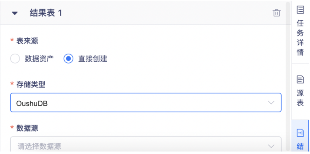 结果表支持 oushuDB 数据源。
