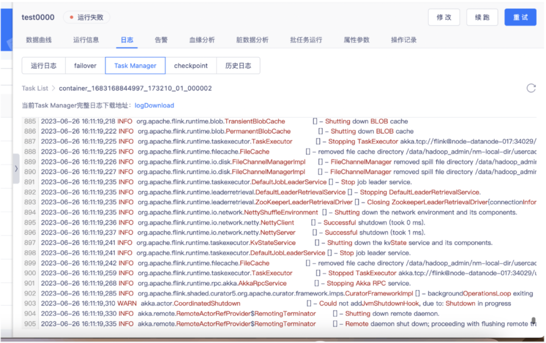 体验优化说明:日志实时打印优化,任务失败后会再轮询打印一次日志。
