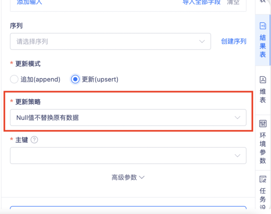 背景:Starrocks 插件支持 upsert 定义主键,但平台向导模式不支持,需要在向导模式对更新模式进行调整适配。