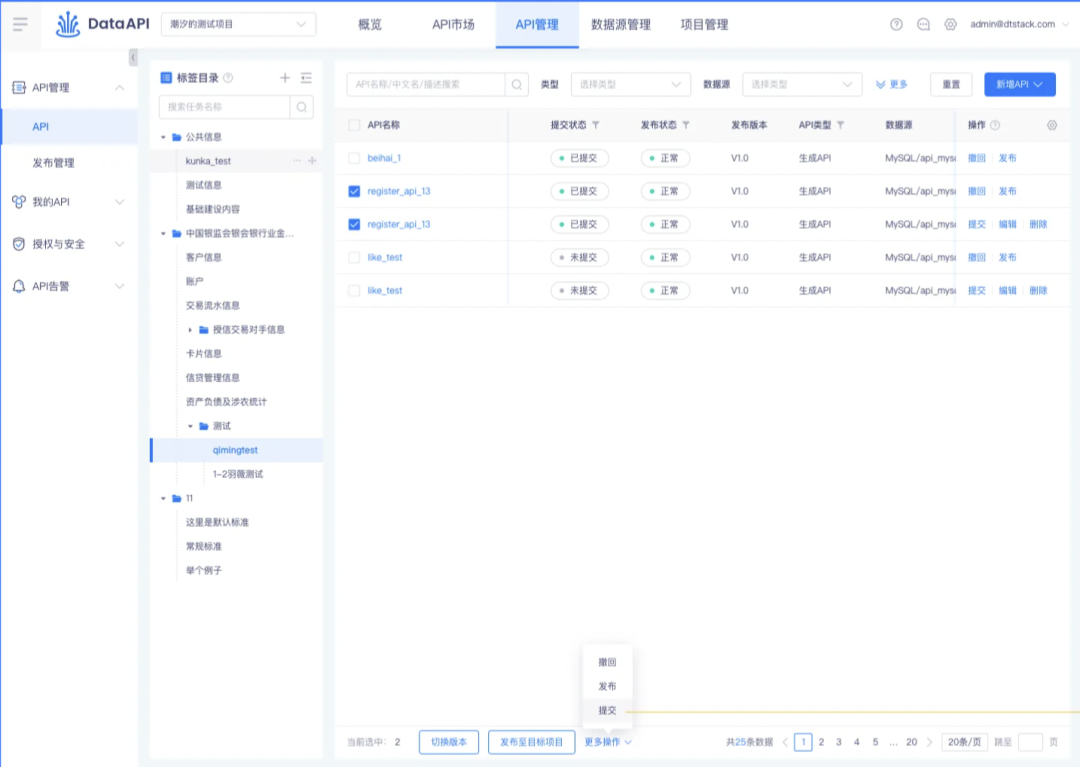 支持 API 可以批量提交、批量发布、批量撤回等操作,提高 API 的操作效率。
