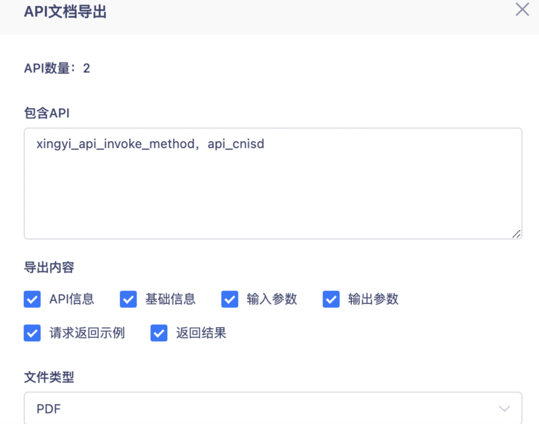 2.API 文档导出时支持选择导出的内容