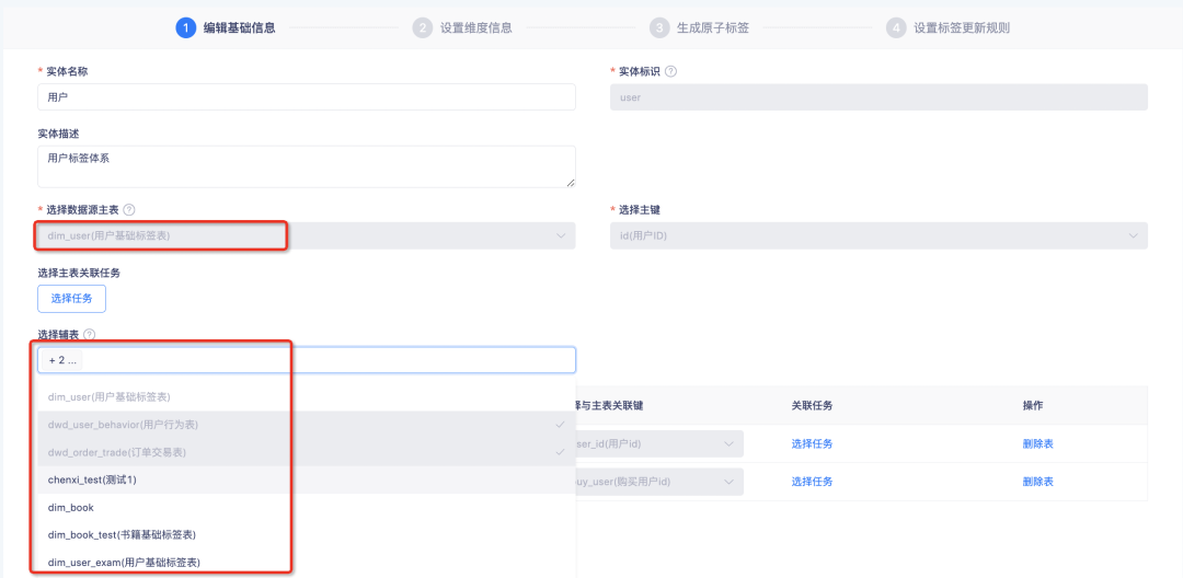 • 选中特定标签后,将进入标签创建页面,将复制标签的配置信息快速填充至当前新标签的配置中,若其中涉及当前实体尚未配置的表/标签,则需手动重新选择一遍。