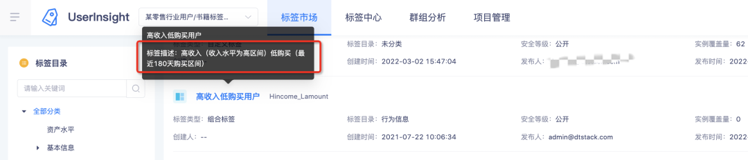 3.标签配置、标签市场、标签圈群页面展示标签名称+描述信息