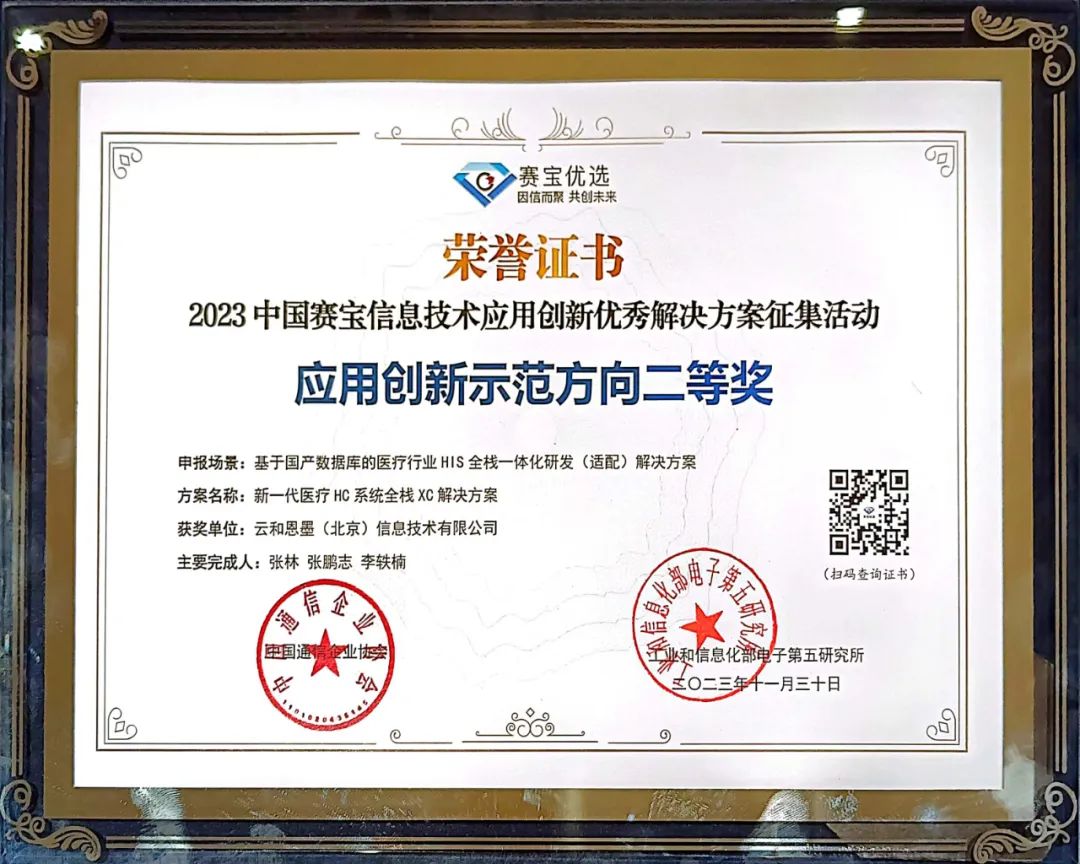 2023(第四届)数字化转型推动高质量发展大会于11月30日在海南海口举行,活动现场举办了2023中国赛宝信创优秀解决方案征集活动决赛颁奖仪式。该征集活动自今年9月启动以来,共收到来自全国279个方案报名参赛,经过激烈角逐,共81个方案获奖,云和恩墨提报的《新一代医疗HIS系统全栈XC解决方案》获颁应用创新示范方向二等奖,本文对获奖解决方案进行简要解读。