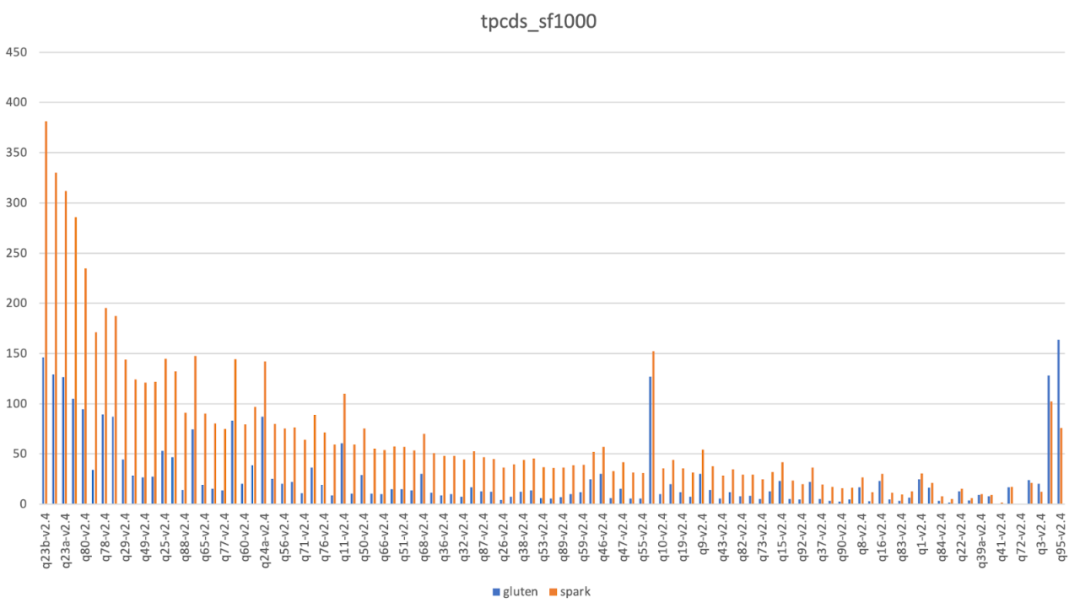 | 总执行时间 s | 2830 | 7082 | Gluten 快 2.5 倍 |