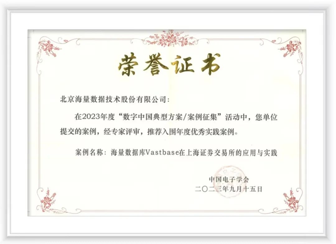 “海量数据库Vastbase在上海证券交易所的应用与实践”获评2023年度数字中国优秀实践案例🔗