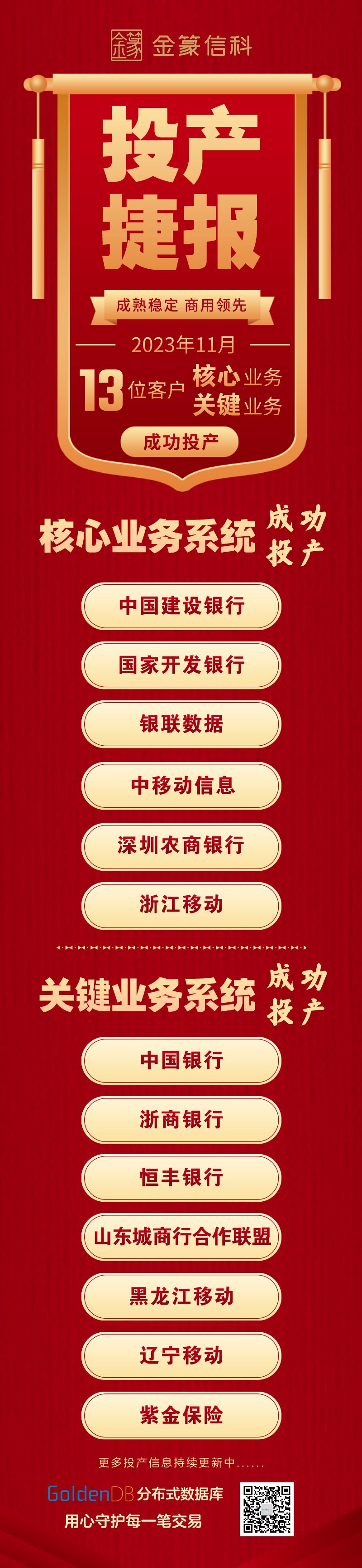 市场金榜 | 捷报频传!11月GoldenDB助力13位客户业务投产